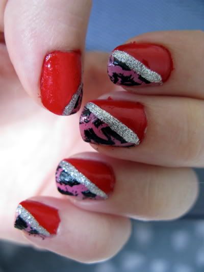 Lakat: H&M Happy Pink ja Red Nail, Isadora 801 Black Tag ja Kissin hopeinen nail art lakka.