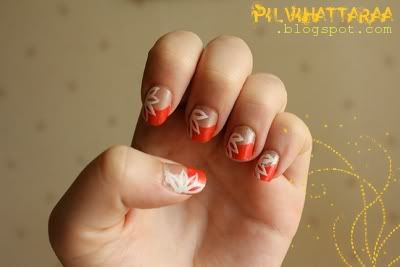 Lakkasin perjantaina isän synttäreille kukkakynnet. Nää jäi vähän kesken. Piti tulla terälehtiin vielä hopeaa glitteriä, mutta mulle nousi kuume eikä sitten enää jaksanut 39 asteen kuumeessa mitään lakkailla. No ihan ok:t nämä ovat ilman sitä glitteriiki.